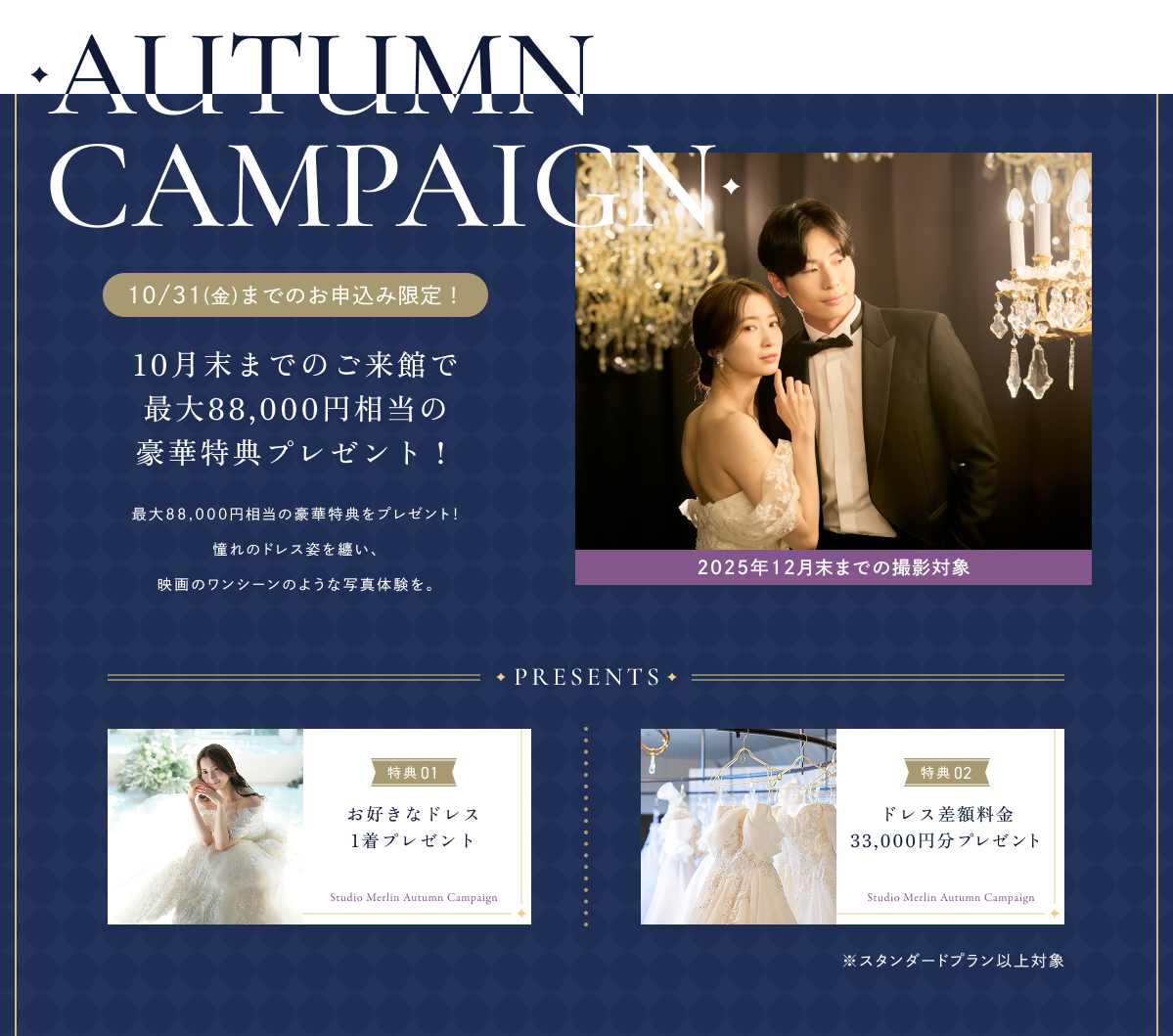 今、注目を集める韓国フォト。映画クオリティのスタジオや、美しさを追求するレタッチ技術は世界でも類を見ないほど。動きを感じるポージングやナチュラルなヘアメイクもその特徴です。おふたりの幸せを世界観たっぷりに描きます。
