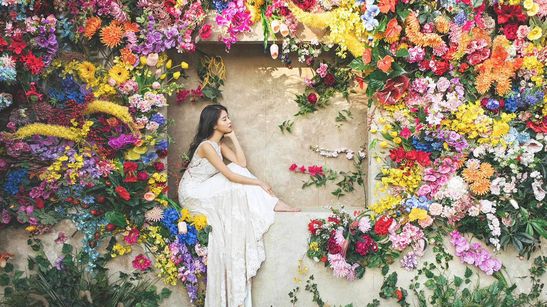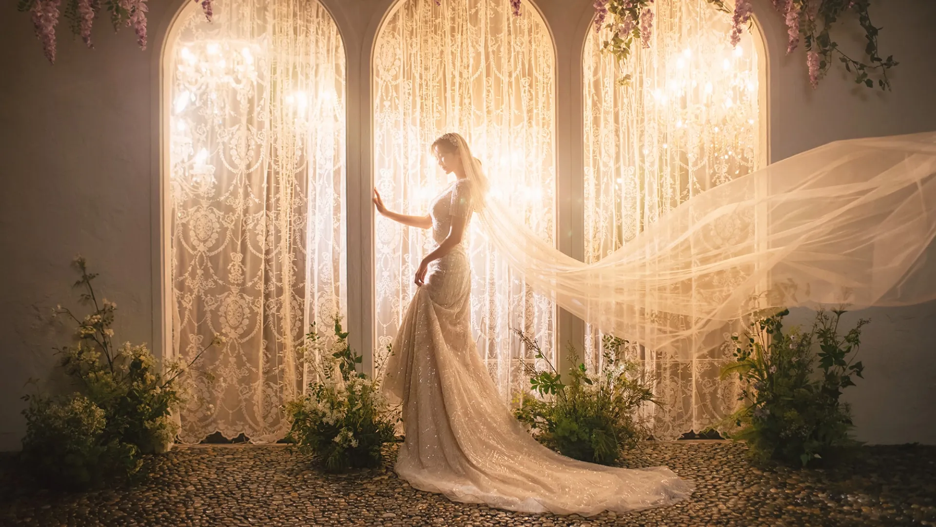 映画界のチームが創るスタジオ。本物志向の建造物や満開の花々…ドラマチックな世界を生みだします