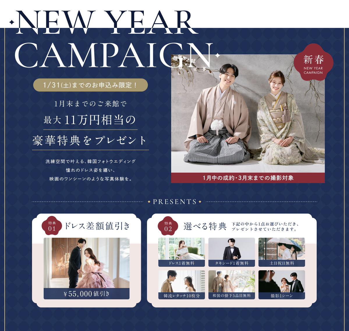 今、注目を集める韓国フォト。映画クオリティのスタジオや、美しさを追求するレタッチ技術は世界でも類を見ないほど。動きを感じるポージングやナチュラルなヘアメイクもその特徴です。おふたりの幸せを世界観たっぷりに描きます。