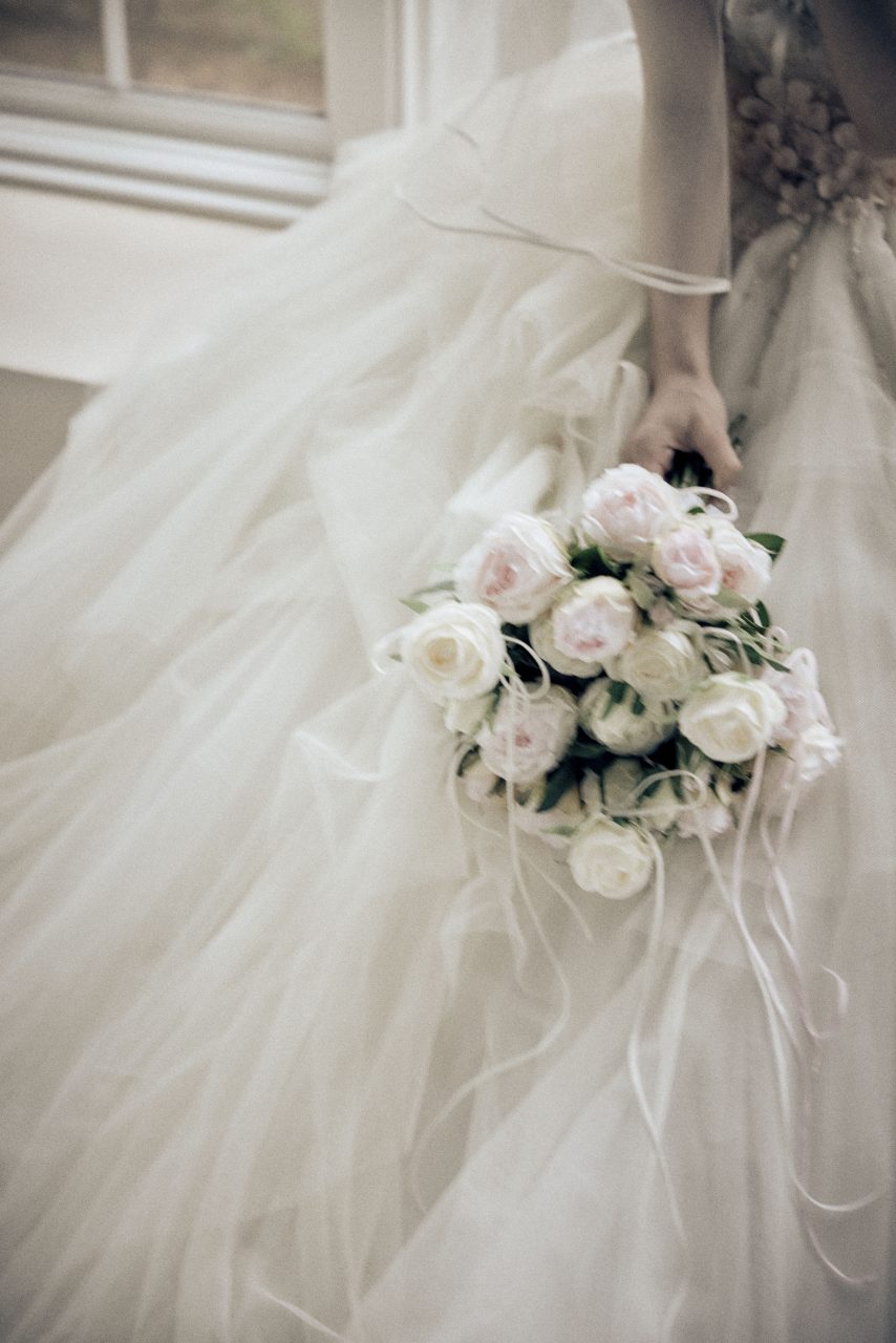 座りカットはドレスのボリューム感を引き立ててくれるので