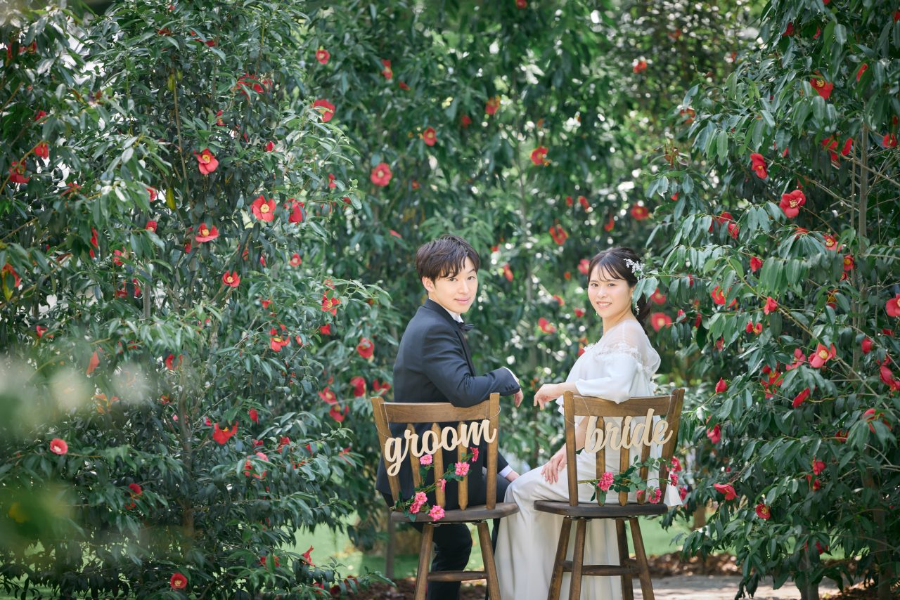 ふんわりドレスもいいですが、マーメイドドレスやワンピースのようなドレスでガーデン撮影も素敵です!
